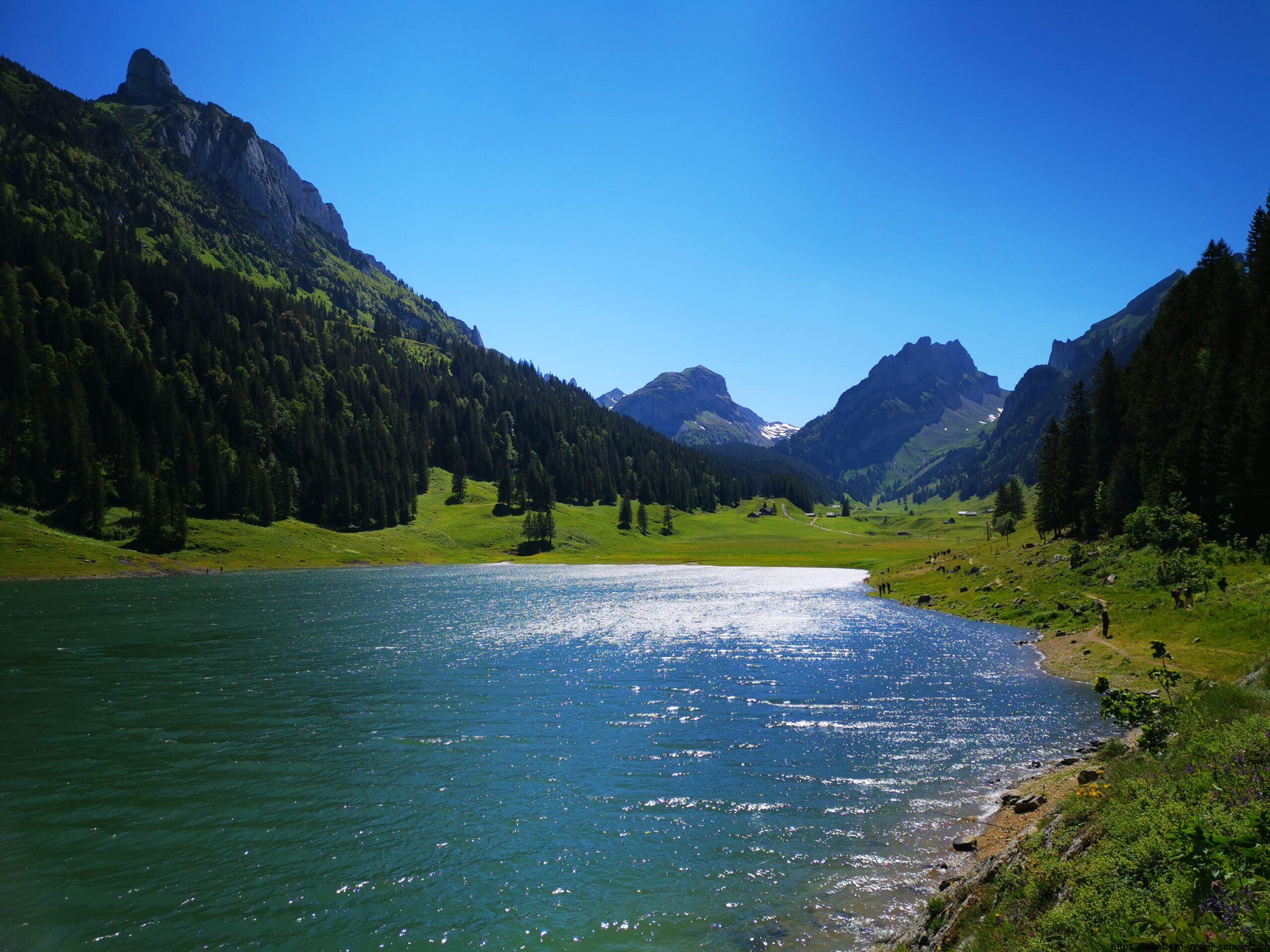 Nachdem wir irgendwann doch trotz Daunenjacke durchgefroren waren, haben wir uns an den Abstieg gemacht. Für eine ideale Rundtour wäre der Weg über den Kastensattel und das Berggasthaus Ruhesitz optimal gewesen. Da ich aber unbedingt zum See und die Wassertemperatur testen wollte sind wir nahezu den gleichen Weg zurückgegangen. Hinter der Alp Soll führt irgendwann ein Weg links ab. Folgt man ihm und biegt später rechts, also Richtung Westen wieder ab läuft man schnurstracks zum Sämtisersee. Es lohnt sich hier eine Weile zu Verschnaufen, die Sonne zu geniessen und zu träumen! Wer möchte kann natürlich auch schwimmen gehen, das Wasser ist herrlich kühl. An der Grillstelle vorbei führt der Pfad wieder hinauf zur Schotterstrasse und zum Gasthaus Plattenbödeli. Ab hier ist der Weg wieder bestens bekannt und flugs geht es zurück zur Talstation Brülisau.