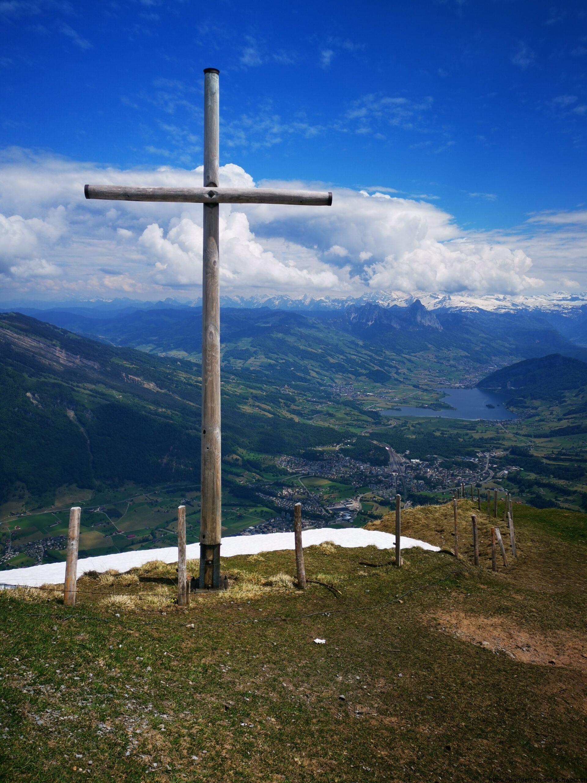 Eine Gruppe Teenager hat es dennoch geschafft ein letztes winziges Schneefeldchen zu entdecken und eine Schneeballschlacht zu veranstalten. Schon ulkig wie sich Menschen nach Monaten mit Corona über so einfache Dinge oder Aktivitäten freuen können. Die meisten anderen haben sich aber nur die Sonne auf den Bauch scheinen lassen und die Aussicht auf sich wirken lassen Jeden Gipfel kann ich gar nicht aufzählen, dafür gibt’s zum Glück eine Tafel: Churfirsten (2’279 m), Rautispitz (2’283 m), Gross Mythen (1’899 m), Piz Sardona (3’056 m), Tödi (3’614 m), Rossstock (2’461 m), Oberalpstock (3’328 m), Risetenstock (2’290 m), Titlis (3’238 m), Finsteraarhorn (4’273 m), Schreckhorn (4’078 m), Mönch (4’099 m), Eiger (3’970 m), Jungfrau (4’158 m), Brienzer Rothorn (2’350 m), Schrattenfluh (2’092 m),…